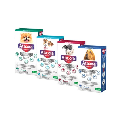 Ataxxa ist ein Spot-on-Produkt und wirkt gegen Flöhe. Es kann verwendet werden, wenn Ihr Hund Flöhe hat oder um zu verhindern, dass Ihr Hund Flöhe bekommt. Es ist auch wirksam gegen Zecken, Mücken und Sandfliegen. Dieses Spot-on wirkt innerhalb von 1 Tag gegen Flöhe und ist 4 Wochen lang wirksam. Es kann auch bei einer Flohallergie verwendet werden.