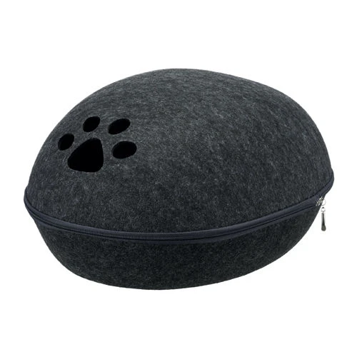 Die Kuschelhöhle Liva der Marke Trixie ist Hundebett und Versteck in Einem! Das Hundekörbchen aus Filz bietet Ihrem Vierbeiner einen herrlichen Schlafplatz. Gleichzeitig können Sie Ihm ein sicheres Versteck bauen, indem Sie die den Deckel mit einem Reißverschluss am Unterteil befestigen und das Bett so in eine Höhle verwandeln. Das weiche Kissen im Innern hat einen Plüschbezug, der von Hand gewaschen werden kann.