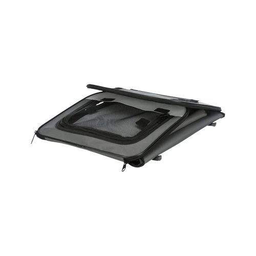 Die Basic-Box ist die perfekte Kiste für Ihren Hund. Die Seiten der Box sind mit einem Netz versehen, so dass Frischluft und Tageslicht ungehindert eindringen können. Diese können ebenfalls abgedeckt werden. An der Oberseite befindet sich ein Griff zum einfachen Anheben und an der Seite gibt es 3 Außentaschen zur Aufbewahrung. Die Bodenplatte ist für einen bequemen Schlafplatz mit Vlies überzogen. Dank der Schlaufen am Boden und der Heringe kann die Bank auch im Freien verwendet werden.