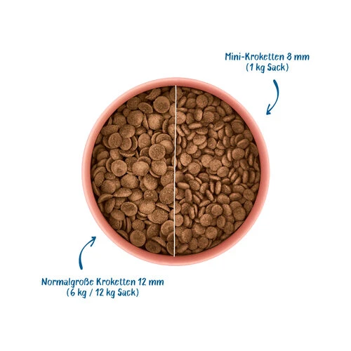 - Lamm mit Salbei: Lammfleisch 46% (frisches Lammfleisch 28%, Lammfleischprotein getrocknet 18%), Kartoffeln, Erbsen, Süßkartoffeln, Geflügelfett, Rübenschnitzel (entzuckert), Spinat, Lachsöl, Leinsamen, Rüben, Kräuter, Kamille, Salbei, Karotten, Yucca schidigera, Mineralstoffe, FOS 0,1%, MOS 0,1%.